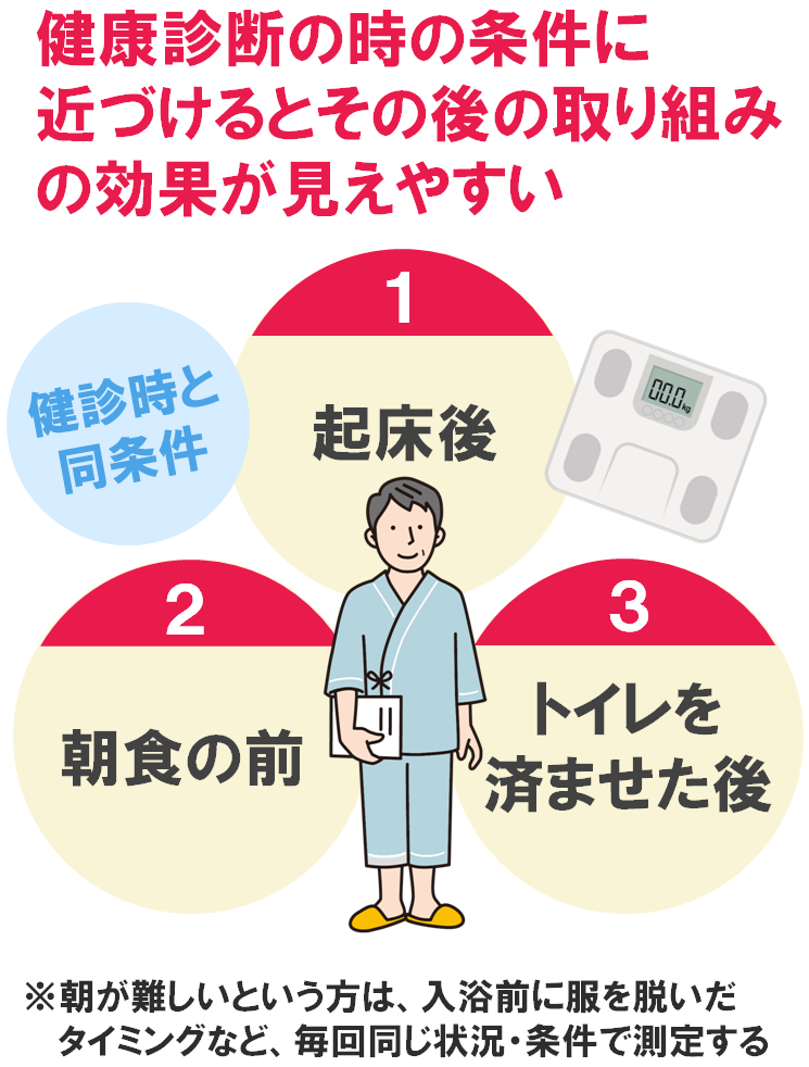 特に「起床後、朝食の前トイレを済ませた後に測定すると、健診からの変化が見えやすいです。