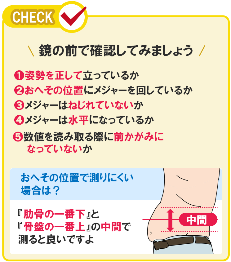 「体重の変動が大きくて…取り組みの効果が出ているのか分からない」「お腹周りの測り方が正しいのか心配」こうした不安や疑問をお持ちの方は、測定のポイントを一緒に確認してみましょう。