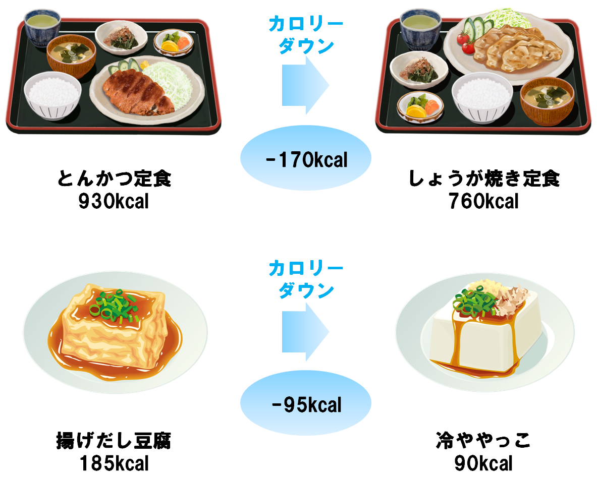 揚げ物以外の料理を選択することで、カロリーを大幅に減らすことができ、脂質の数値改善にもつながります。