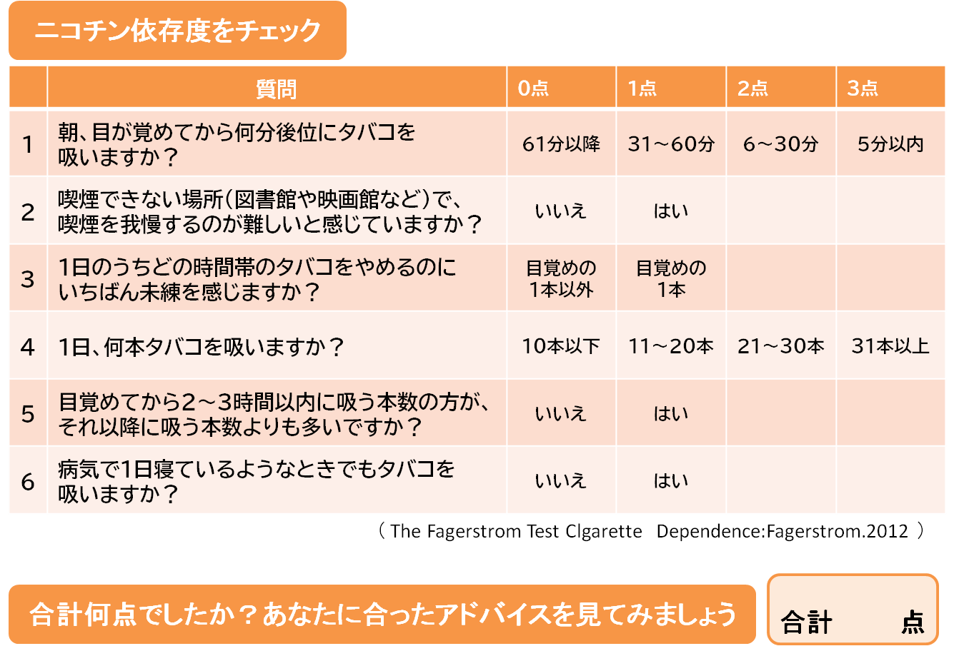 『ニコチン依存度チェック』から始めましょう