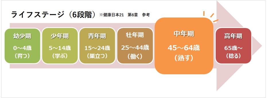 今回は45~64歳の中年期にあたる方向けの健康情報をご紹介します。