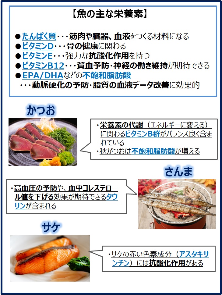 秋と言えば食欲の秋!『たんぱく質』が豊富な魚から、『食物繊維・ビタミン・ミネラル』が豊富な野菜・きのこ類・果物と、多くの食べ物が旬を迎え美味しくなる時期です。