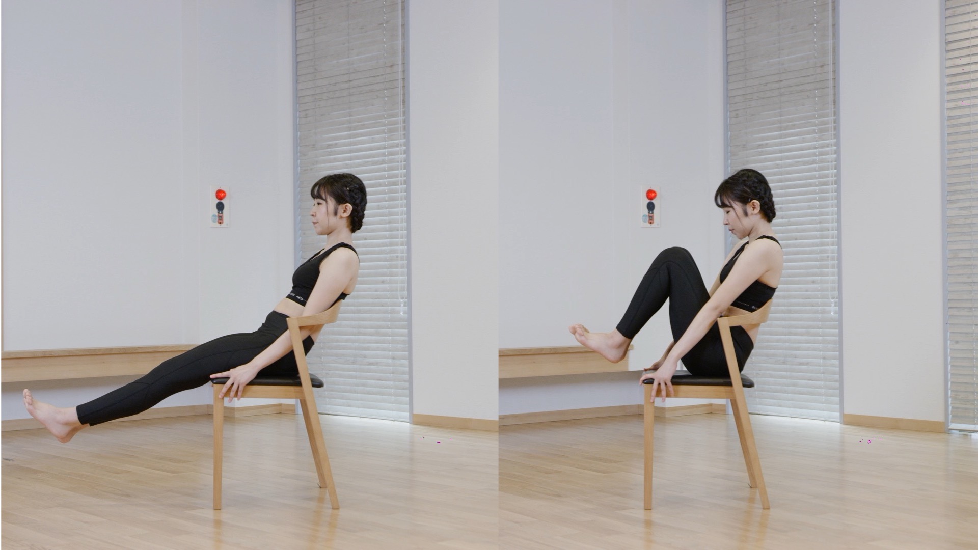 1.椅子に深く腰かけて、脚を浮かせて伸ばす