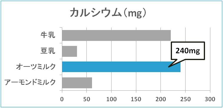 ※市販のオーツミルクはカルシウムが添加されているものが多いため、牛乳と同程度のカルシウムが含まれる