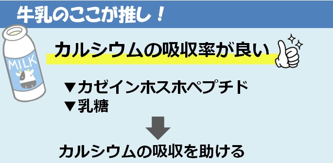 【牛乳】カルシウム・たんぱく質が豊富に含まれている。カルシウムの吸収率が良い。