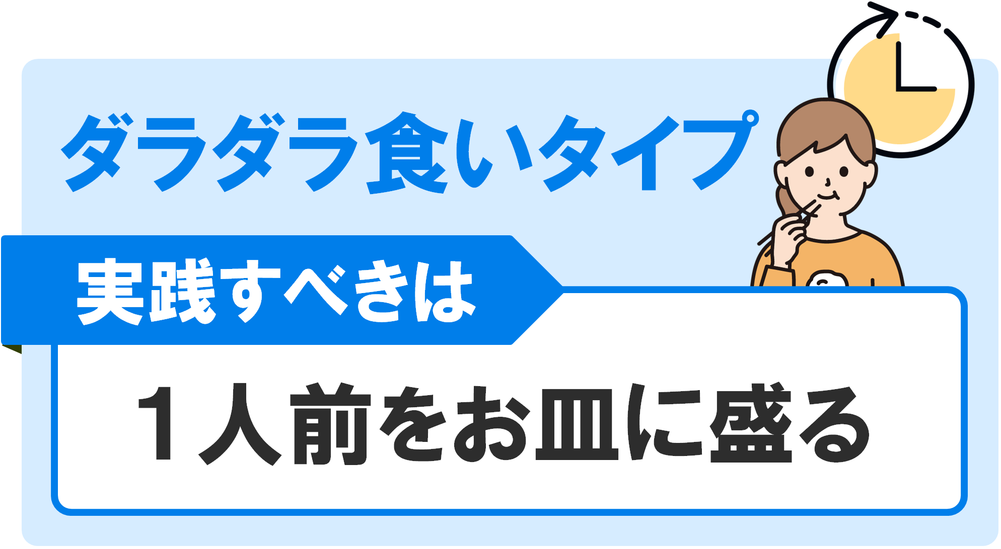 ながら食べは意識が分散してしまうため、「どれくらい食べたかわからない」「気が付いたらお皿が空になっていた」など食べ過ぎの原因になります。
