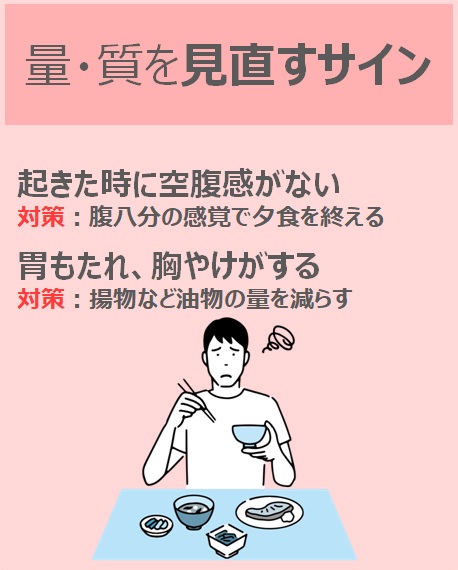 夕食を軽くすると「胃腸の負担軽減、睡眠の質向上」にもつながるため、疲れがたまっている時こそ意識したい取り組みです。