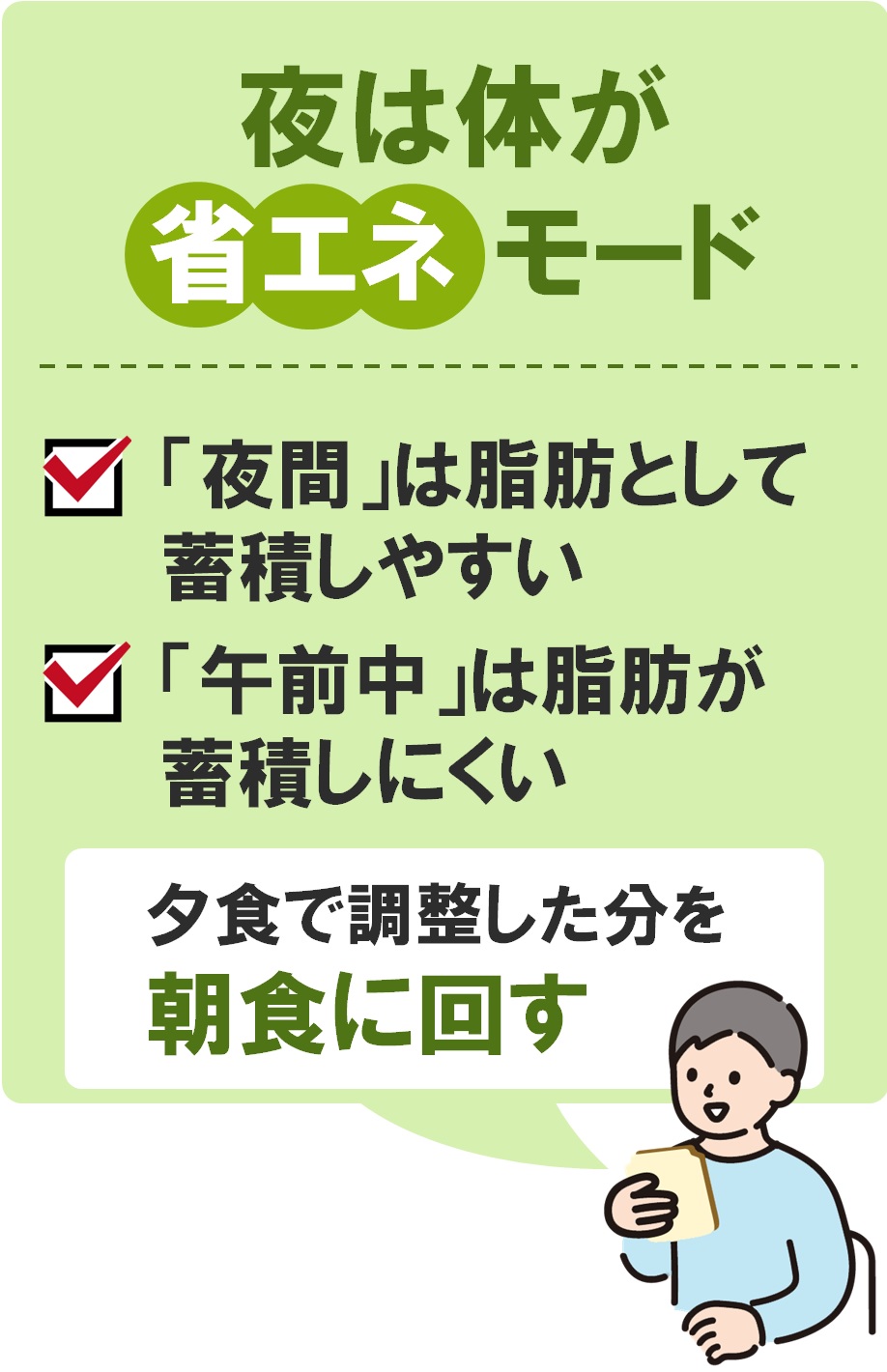 逆に、脂肪が蓄積しにくいのは「午前中」。夕食で調整した分を朝に回すと、無理なく続けやすいですよ。