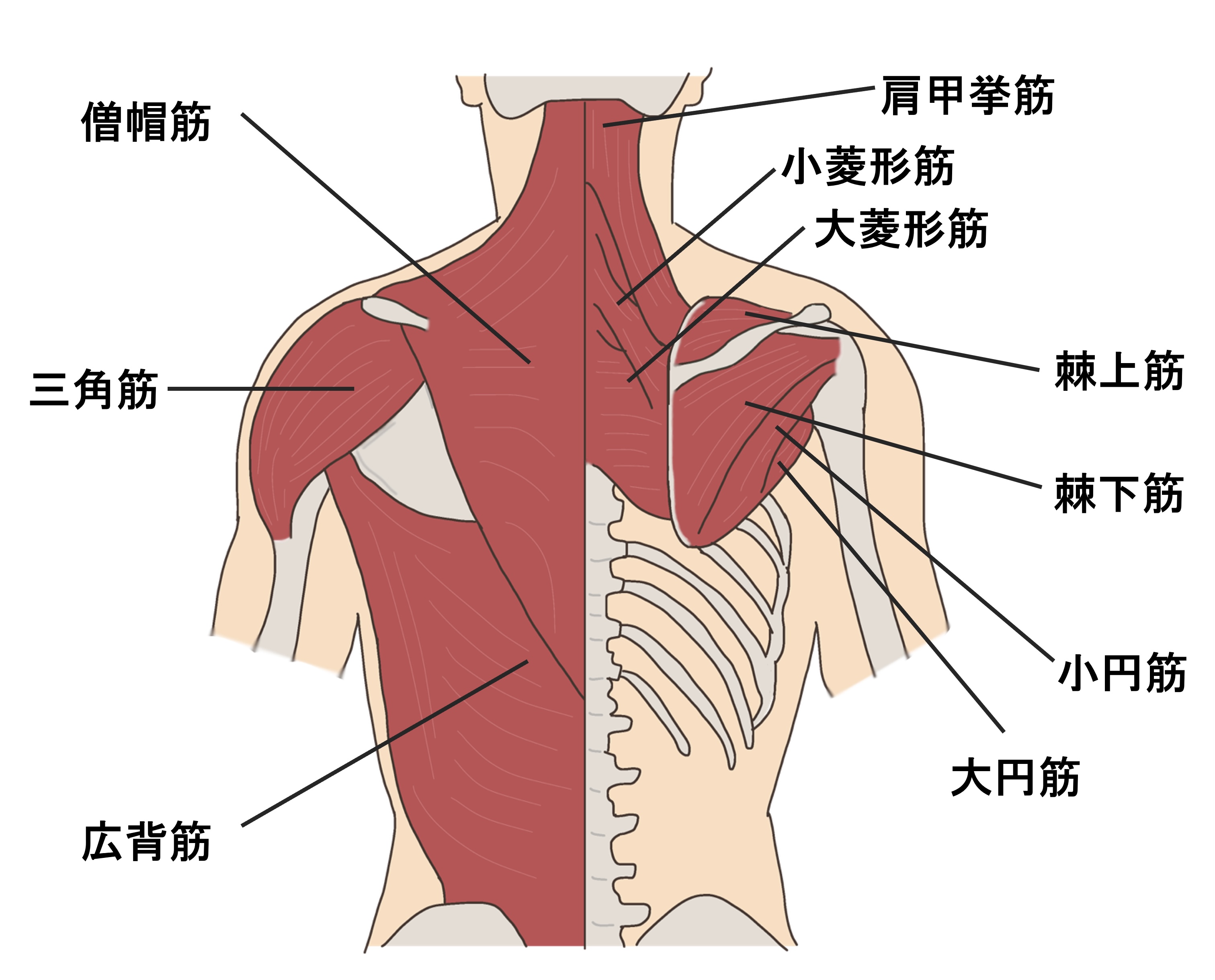 肩甲骨にはおよそ17個の筋肉が付着しており、上下・左右、様々な方向へ動きます。