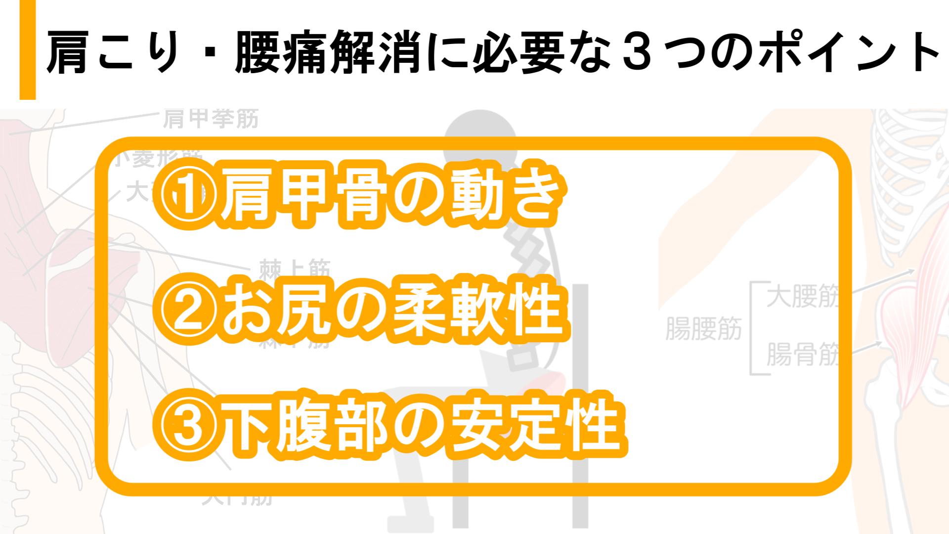 今回は、肩こり・腰痛解消をするために必要なポイントをご紹介しました。