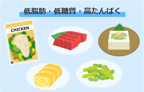 ① 脂質・糖質が少なく、たんぱく質を含むものを選ぶ