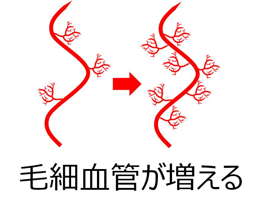 毛細血管が増えると心臓や血管への負担を減らし、血圧改善に効果的です。