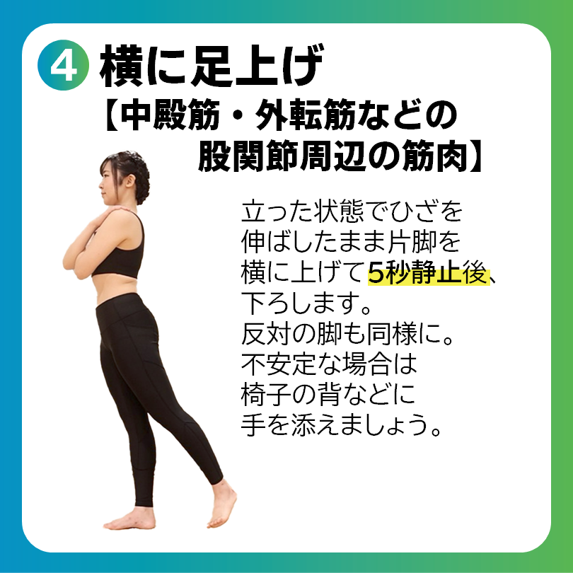 今回は、鍛えたい部位別に実践のポイントをご紹介します。ゆっくりと10回ずつを目安に行い、太りにくい体づくりを目指しましょう。