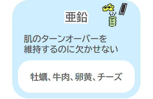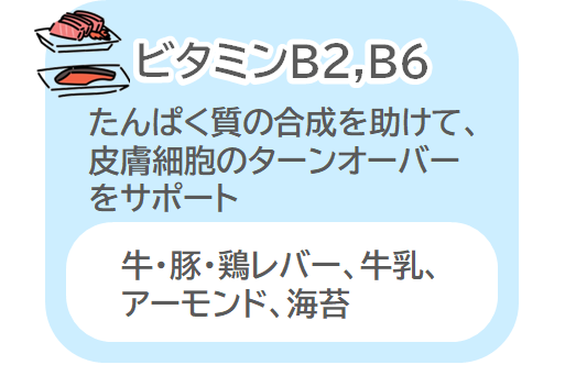 皮膚の健康を守ったり、肌のターンオーバー(生まれ変わり)をサポートしたり、健康な肌作りに欠かせないのがたんぱく質、ビタミン、亜鉛。