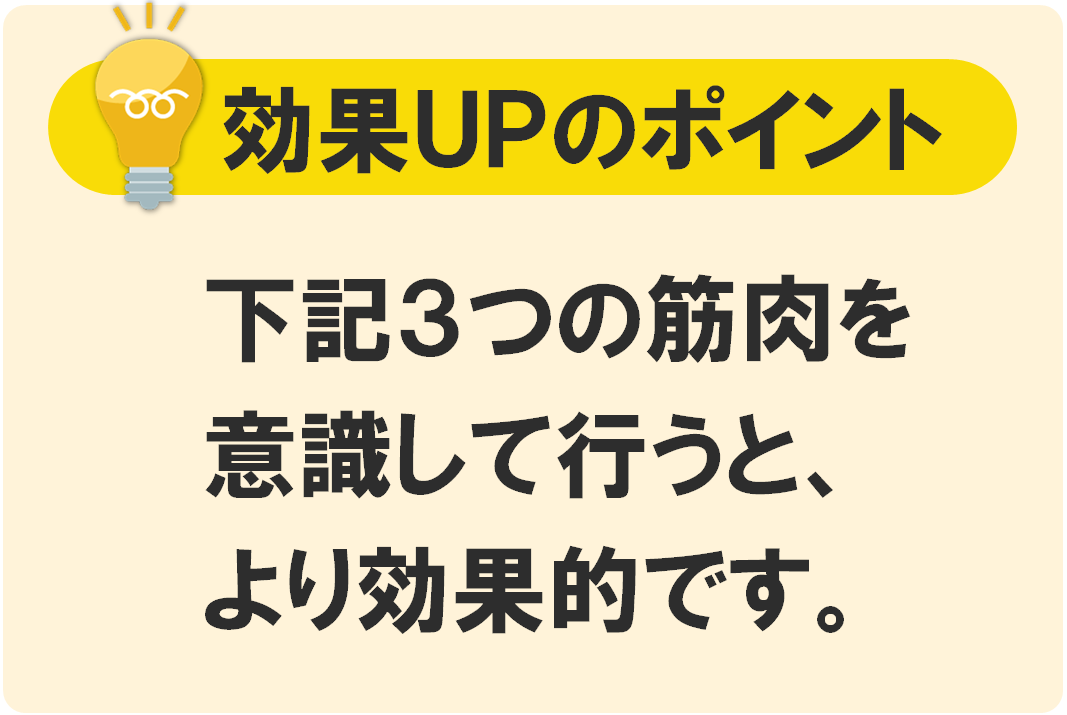 息を吐く際はお腹を凹ませるだけでなく、お尻をキュッと締めて持ち上げるイメージで行いましょう。