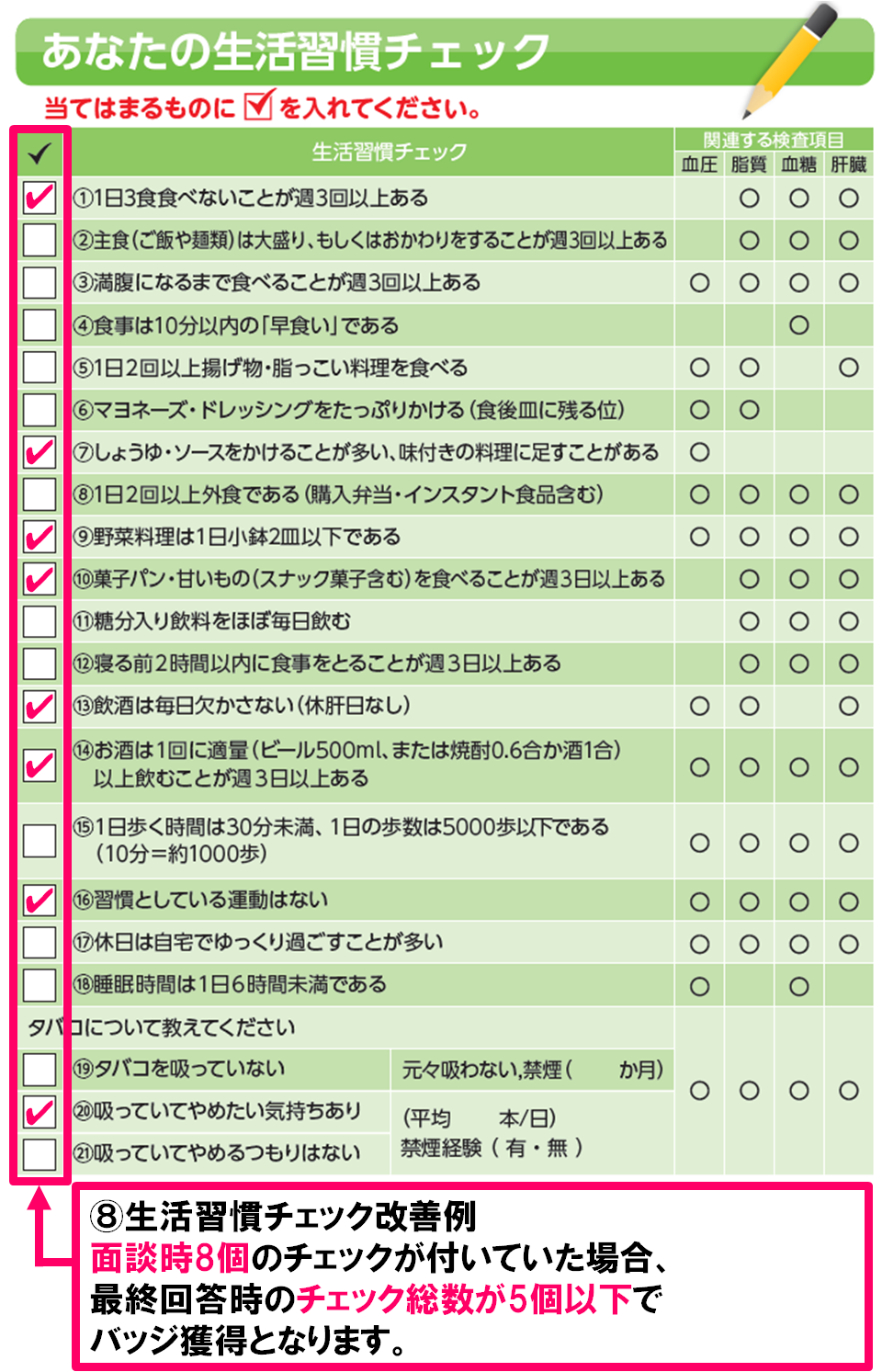 ■図1(健康支援なび6ページの生活習慣チェック一覧)