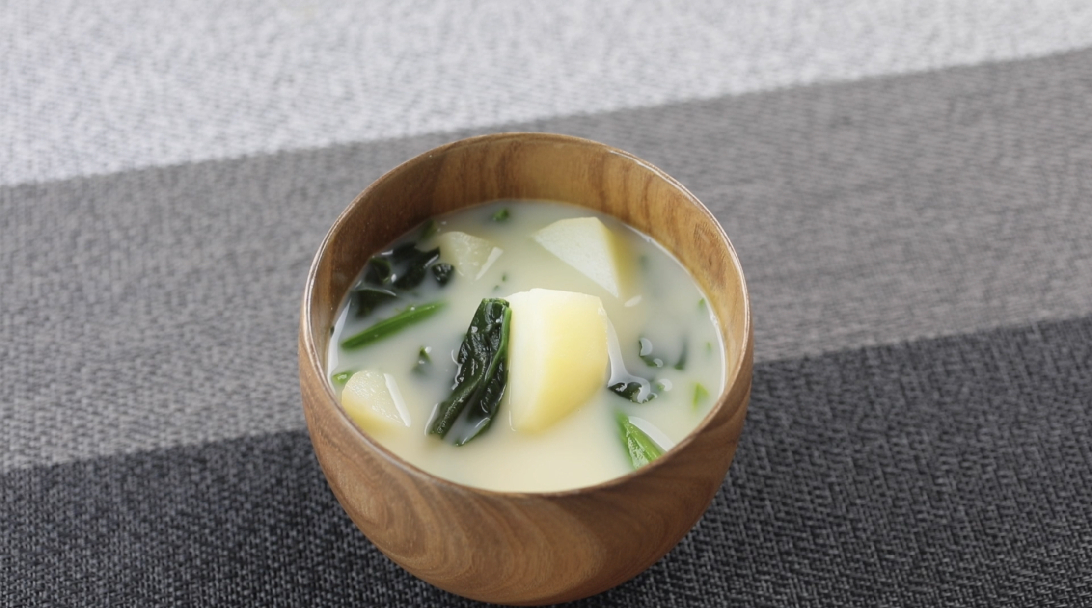 新感覚⁉じゃがいもとほうれん草のミルクみそ汁