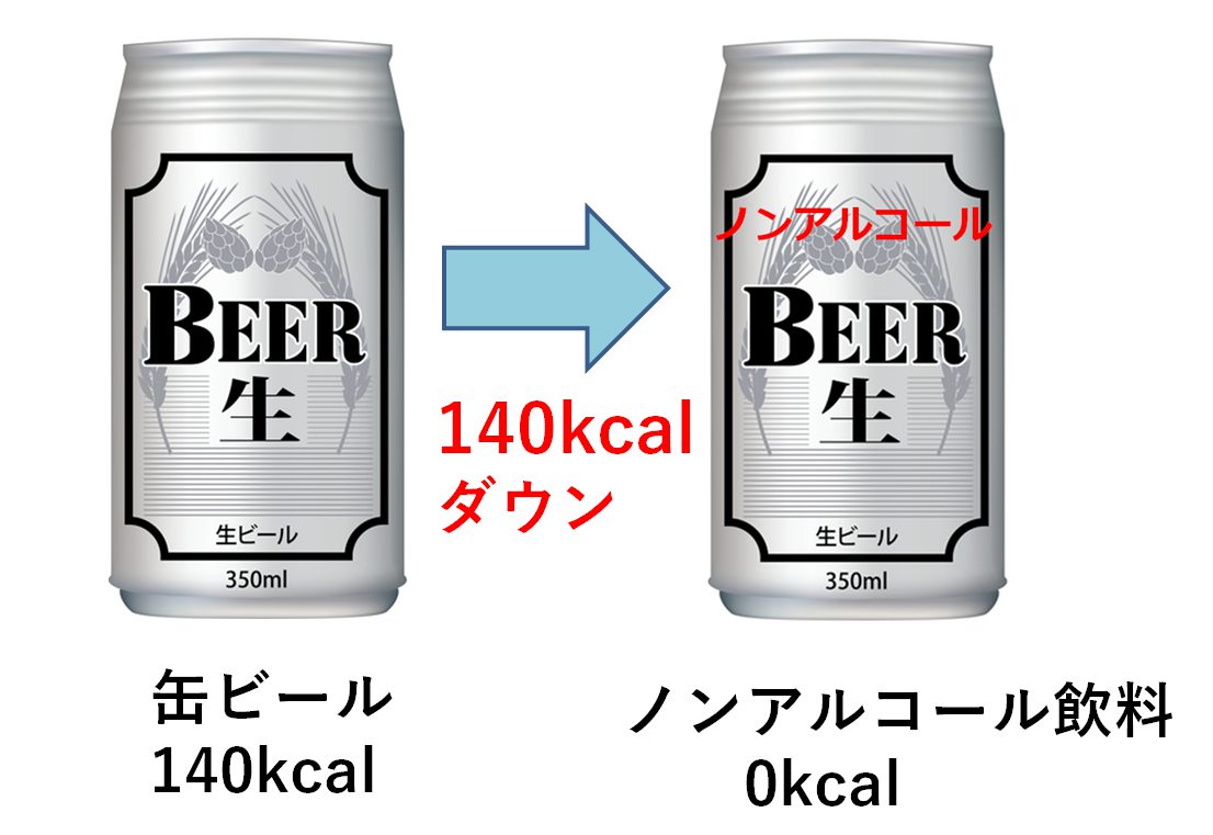 | ●日本酒1合をノンアルコール飲料に替える(-190kcal) | 半年で約4.8kg減! |