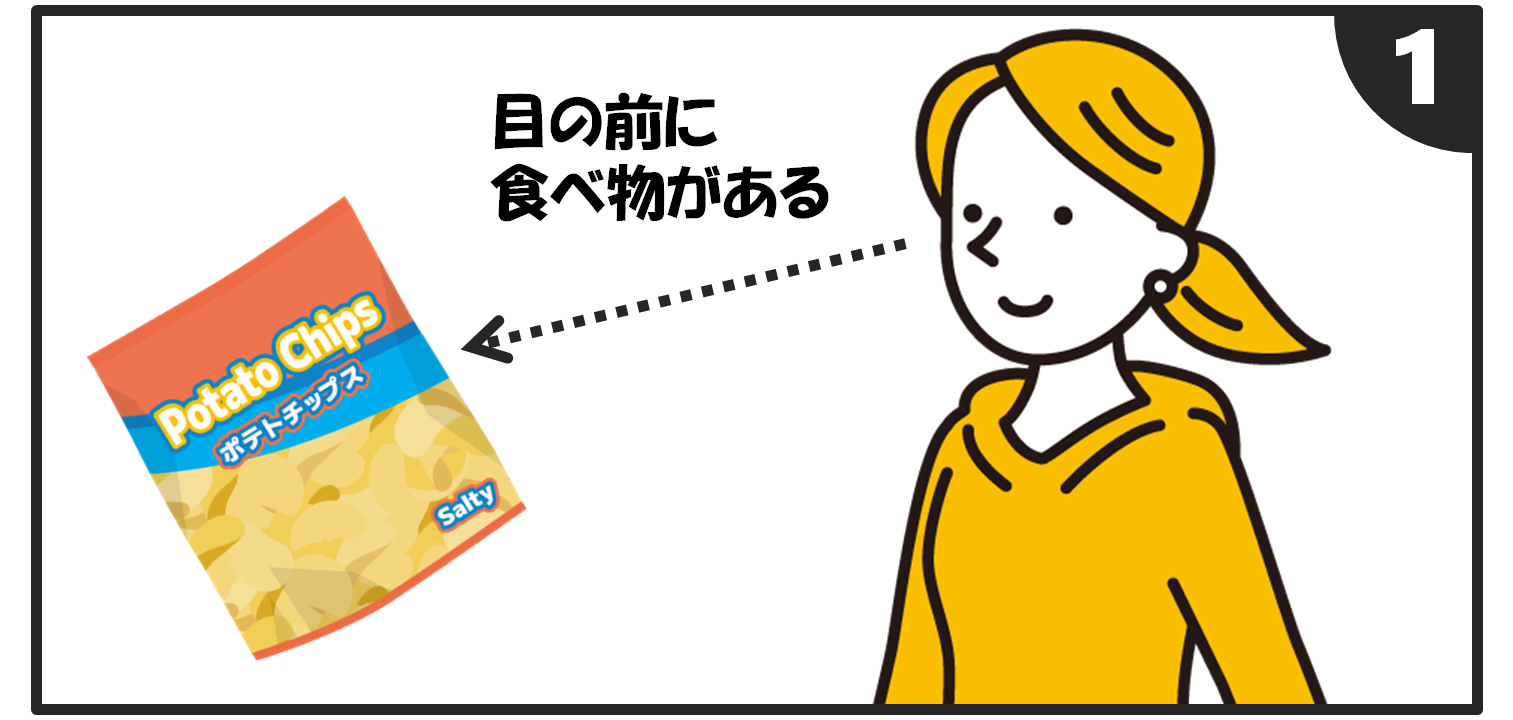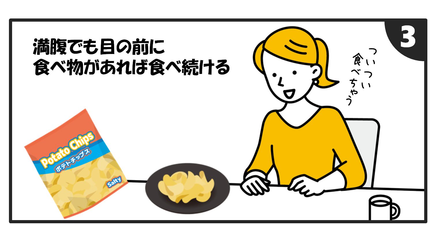 食べ物などの「視覚的な刺激」が、「早く食べなさい」という信号を脳に伝えるため、満腹の状態でも目の前にあるものを食べてしまうそうです。