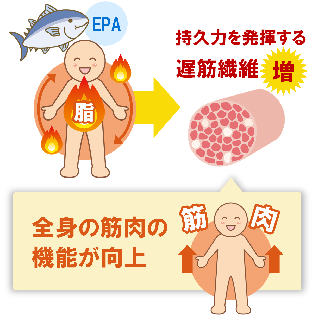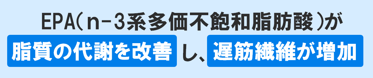 EPAにより脂質代謝が改善することで、持久力を発揮する遅筋線維が増え、全身の筋機能を向上させることがわかっています。