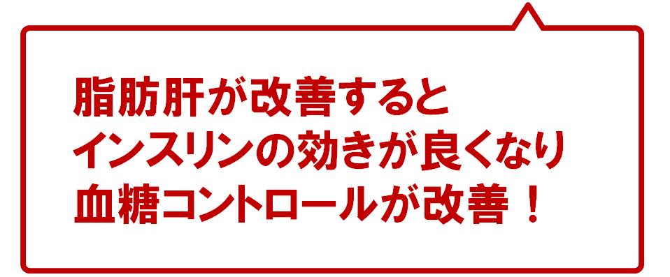 肝機能が回復(脂肪肝が改善)すると、インスリンの効きが良くなり、血糖コントロールも改善することが判っています。