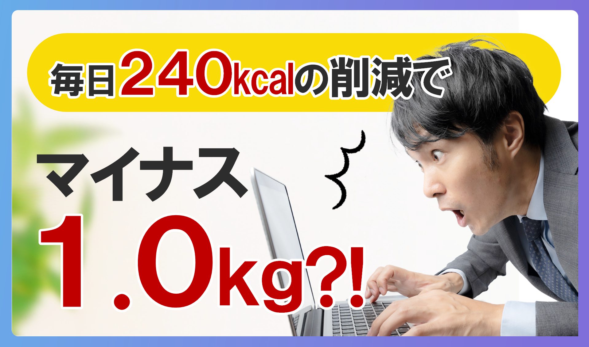 体重が減少するのは、消費カロリーが摂取カロリーを上回った時です。脂肪1.0kgを落とすには7,200kcalを消費する必要があると言われているため、毎日240kcalの削減をコツコツ続けると、1か月後には-1.0kgが期待できます。