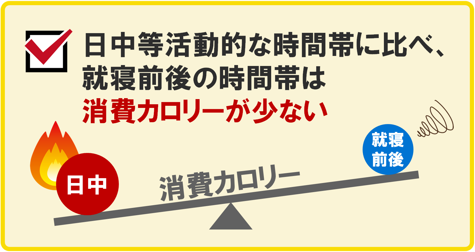 ◆夜遅い時間の食事や、就寝前2時間以内の食事は軽めにする