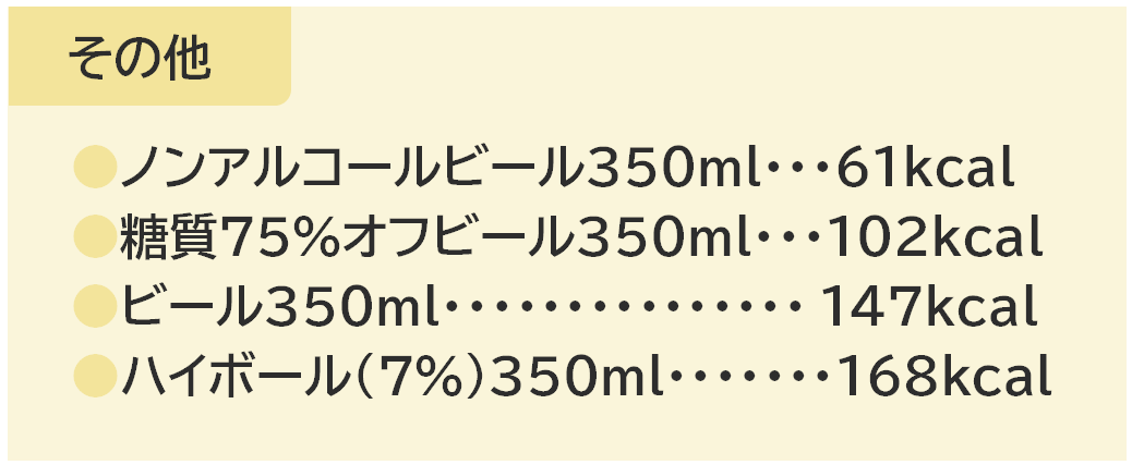 飲酒量の調整が難しい時には、カロリーの低いお酒やノンアルコール飲料の利用がおすすめです。