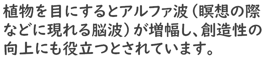観葉植物には、心理的な「癒し」の効果(グリーンアメニティ効果)があることが知られています。