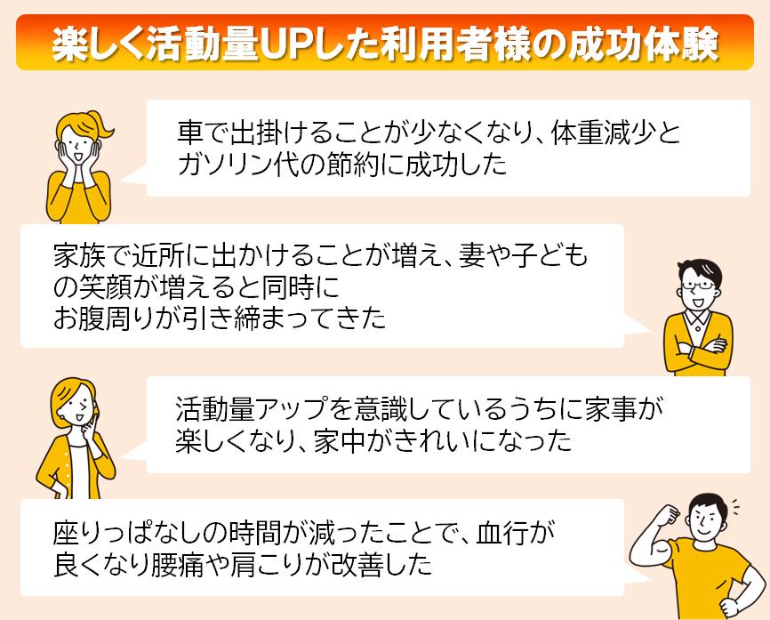 運動のために時間を確保するのは難しくても、日常生活の中には活動量アップのチャンスがたくさんあります。ここでは、気軽に楽しくからだを動かすためのヒントをご紹介します。
