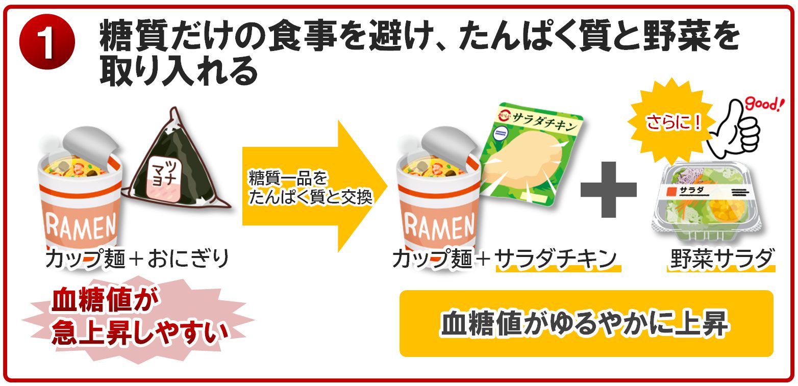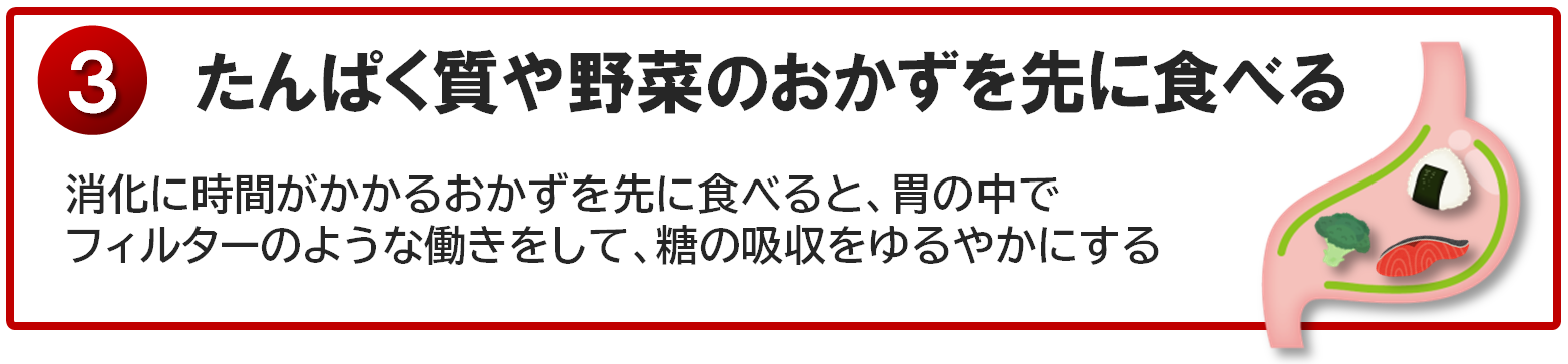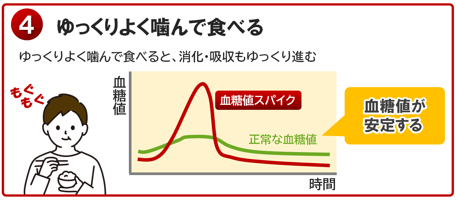 この「血糖値スパイク」による不調は、食べ方の工夫で防ぐことができます。