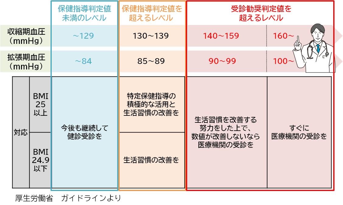 ※家庭で測定した場合は、血圧が135/85mmHg以上でも医療機関受診の対象となります。