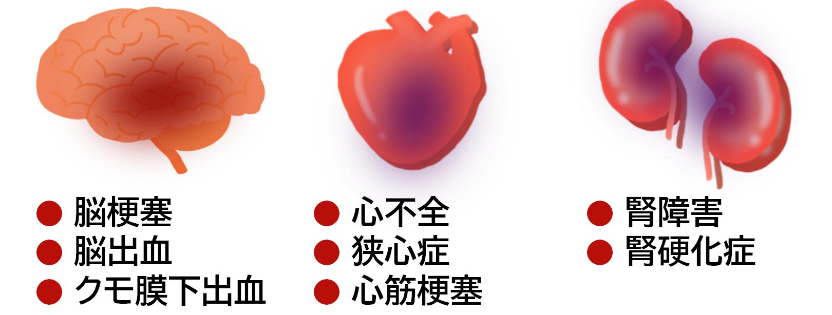 血圧が高い状態が続くと血管を傷つけ、脳梗塞や心筋梗塞など死因となる病気を引き起こします。