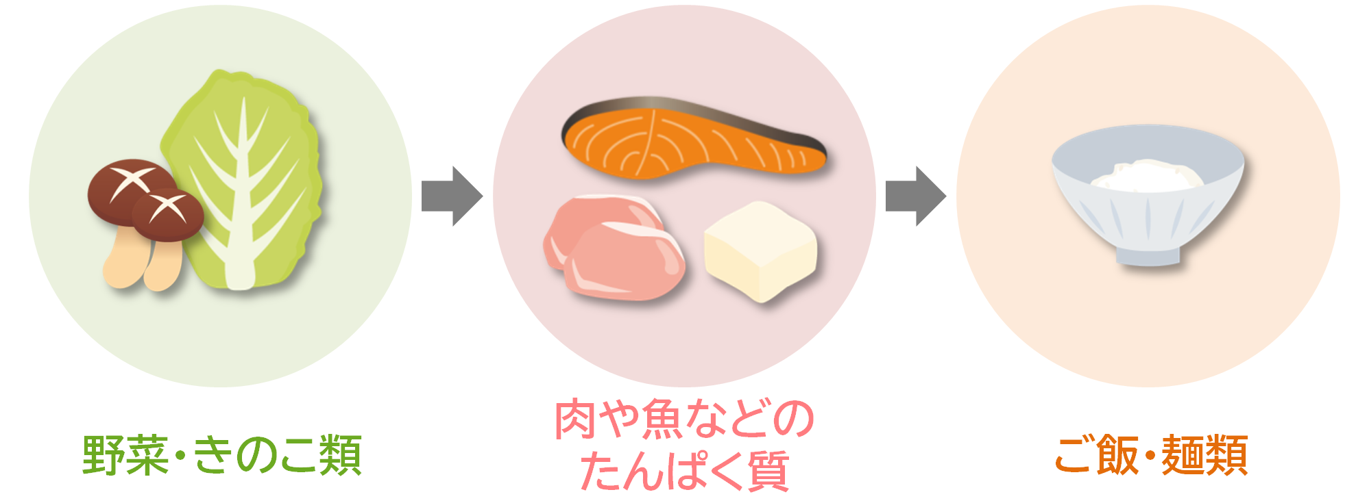 【1】最初に、野菜・きのこ類を食べる