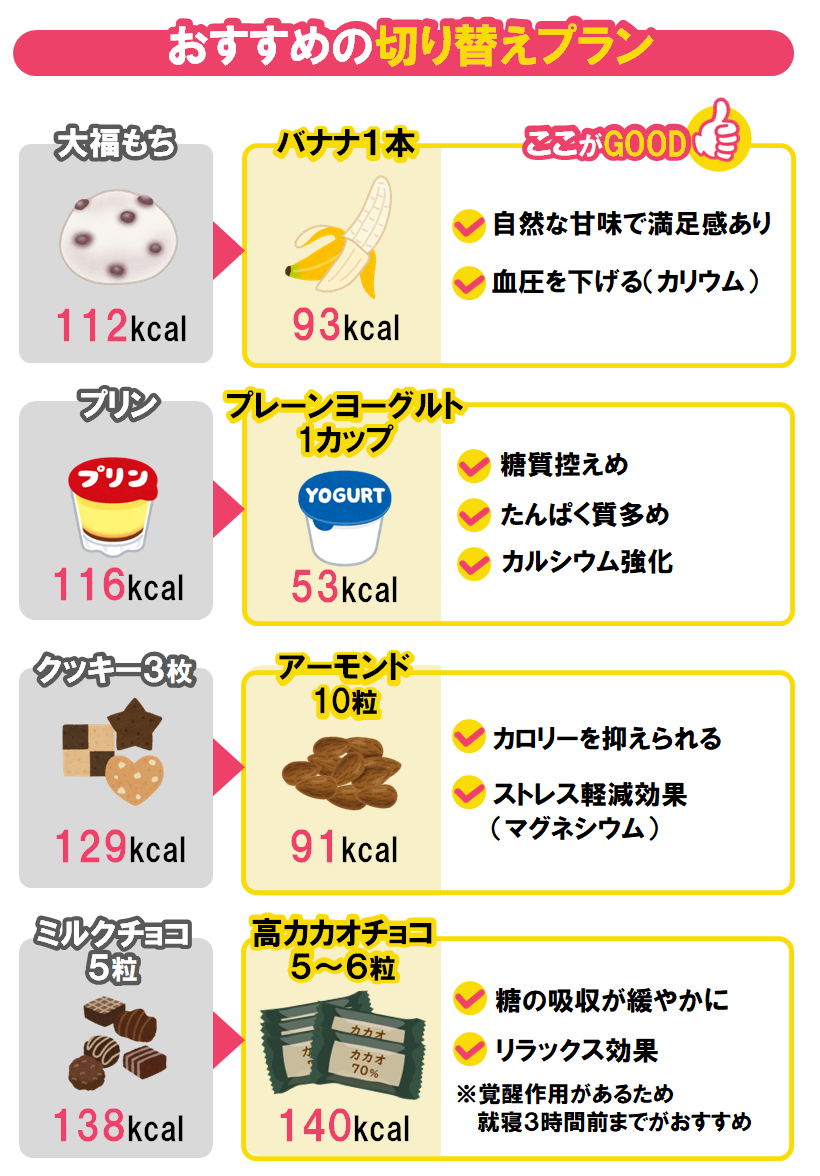 ただ、夜に近づくにつれて脂肪がたまりやすくなるので、間食はできれば19時頃までにしましょう。