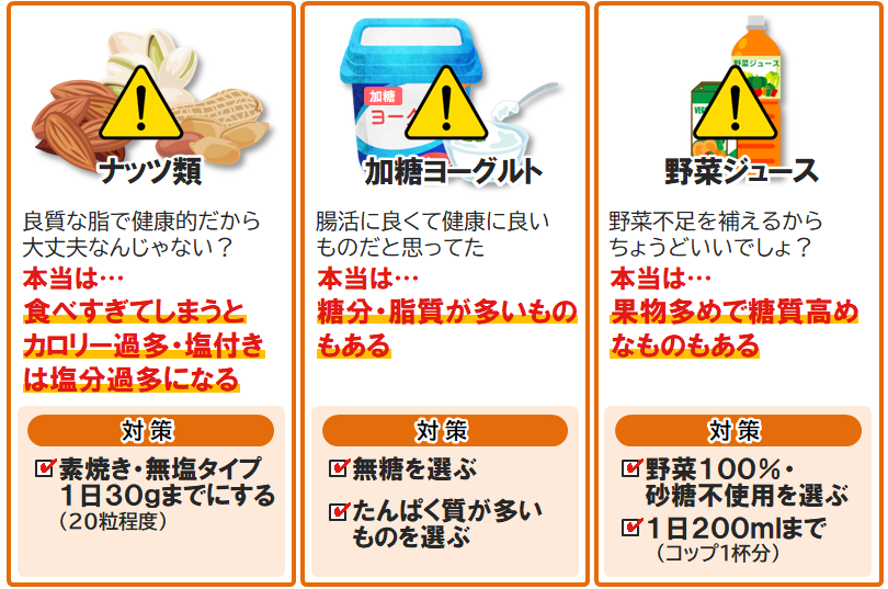 間食や調味料を工夫することでエネルギー摂取量が減り、『体重管理』に役立ちます。