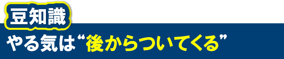 ついつい「やる気待ち」で行動を先延ばしにしがちですが、心理学的には行動がやる気を生み出します。