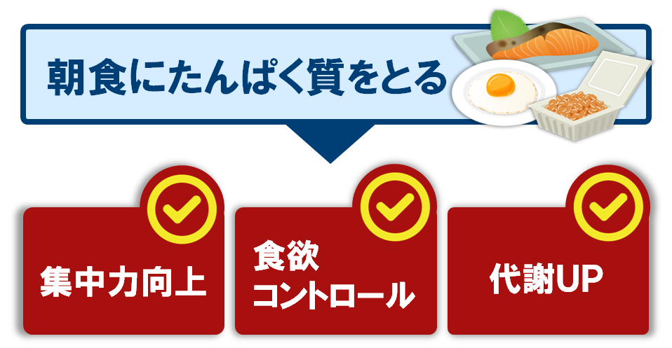 朝食にたんぱく質を取り入れることは、日中のパフォーマンス向上や食欲のコントロールに役立ちます。